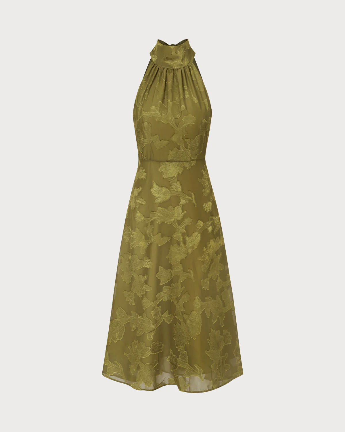 The Green Jacquard Ruched Halter Midi Dress
