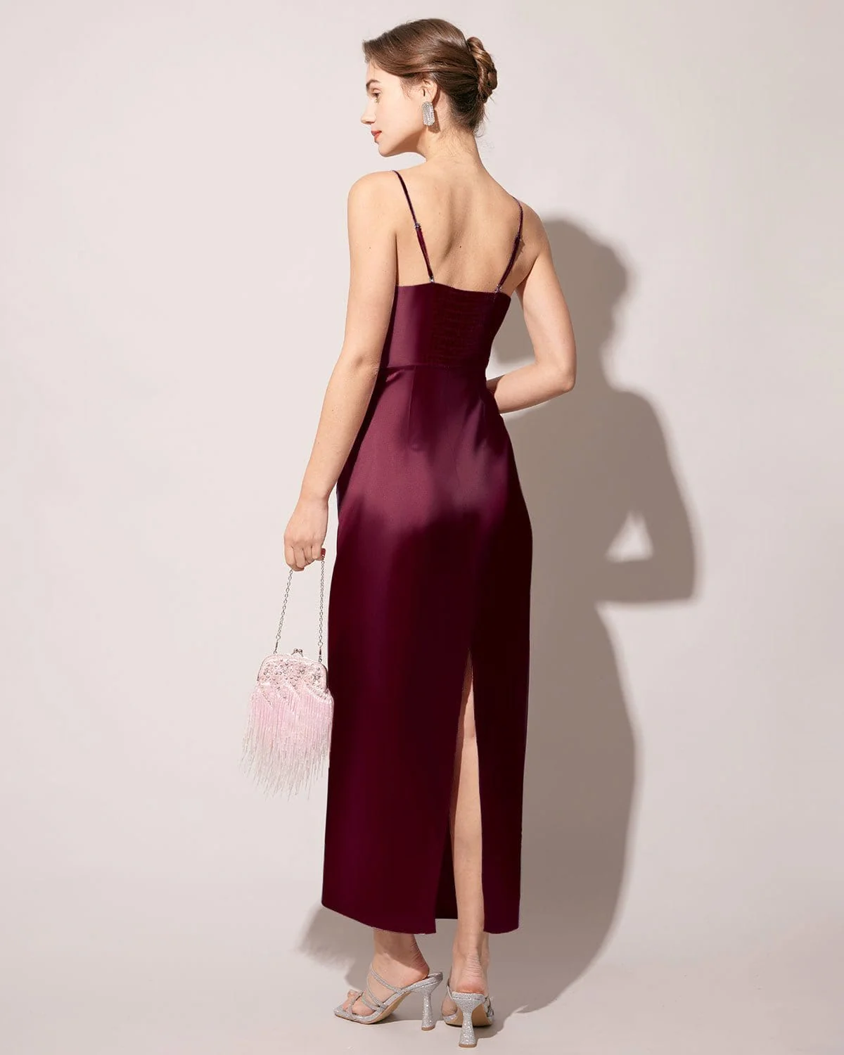 The Red Back Slit Satin Sling Maxi Dress