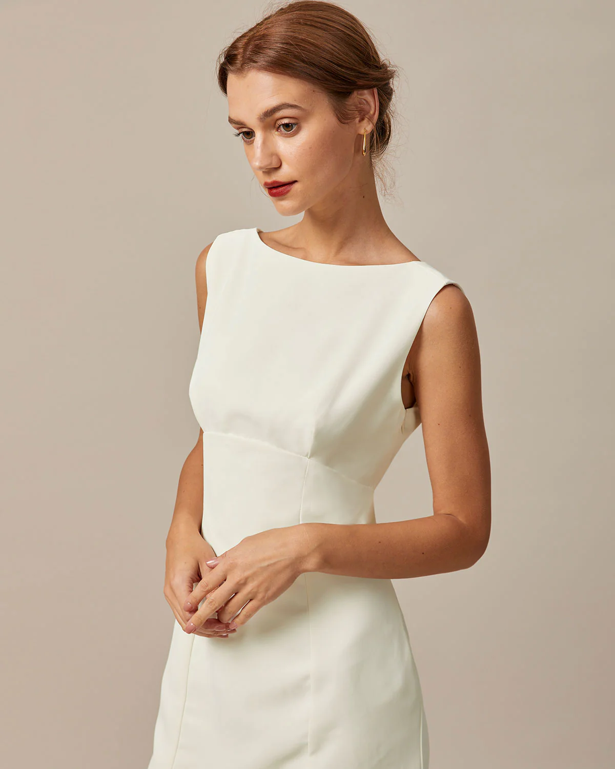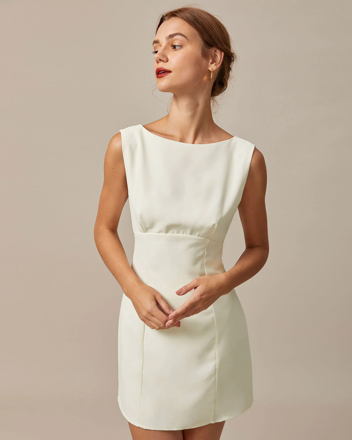The Beige Boat Neck Back Bowknot Mini Dress